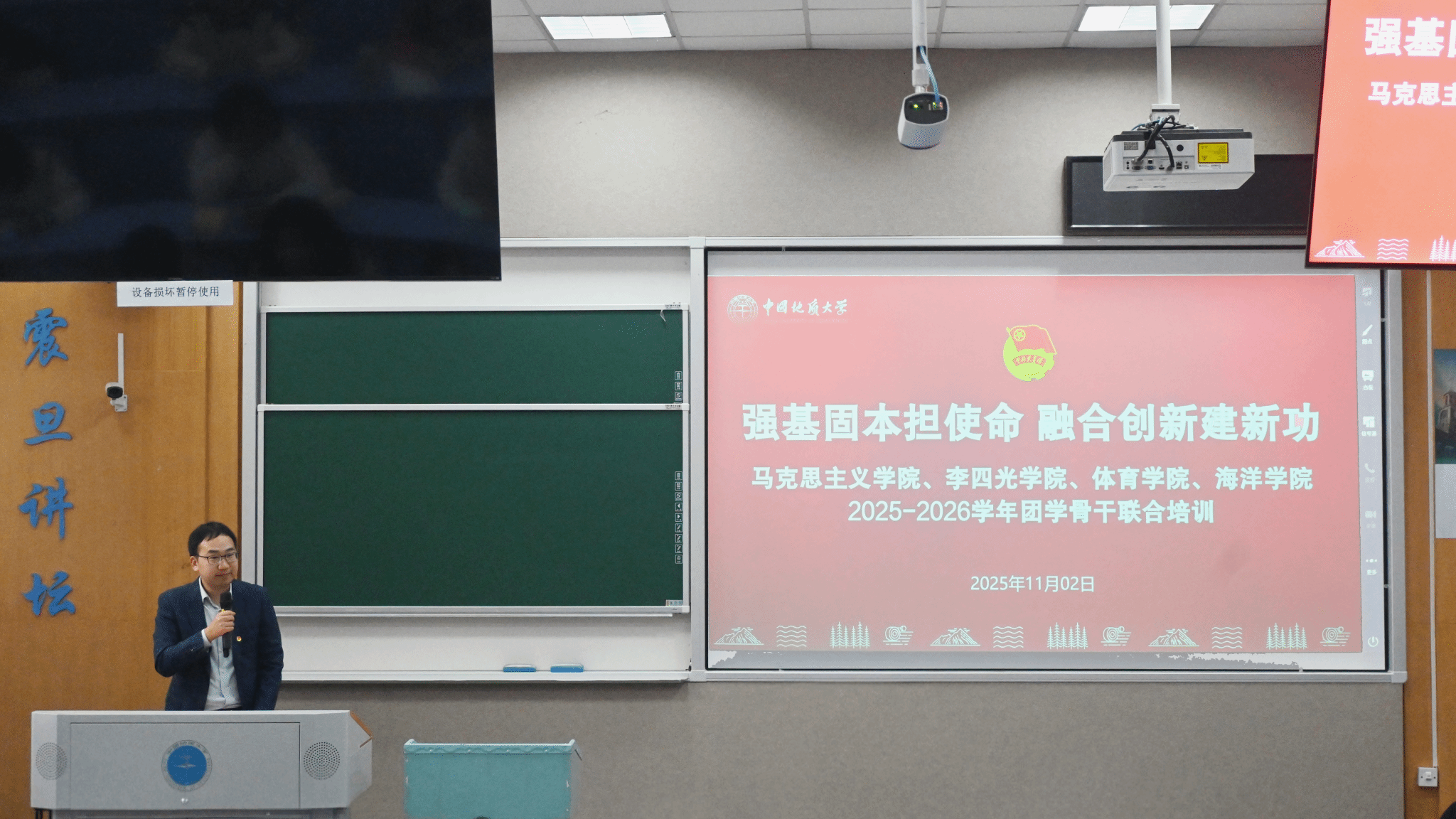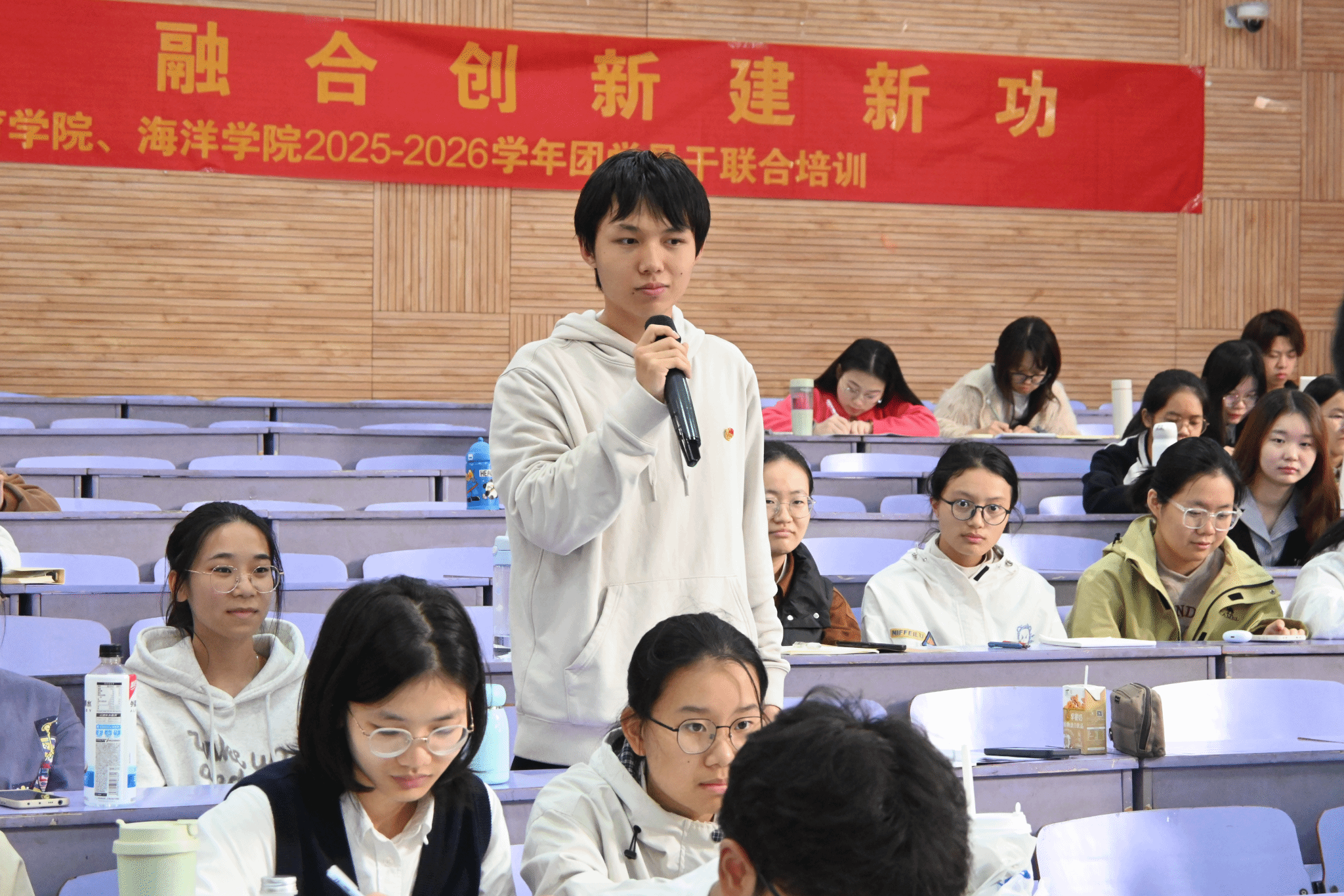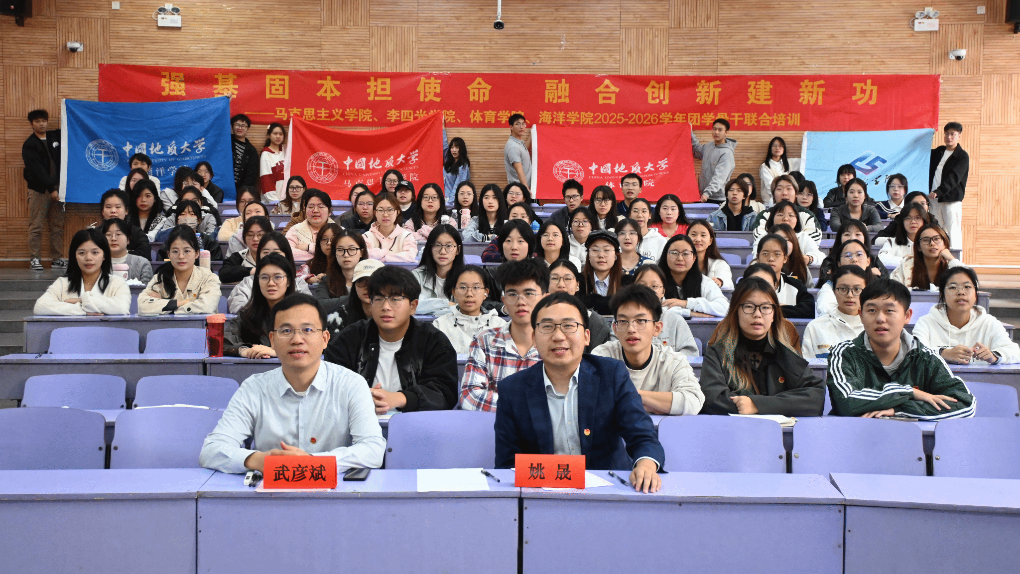 为深入学习贯彻党的二十大精神,全面提升学生骨干的理论素养、组织能力与实践水平,马克思主义学院、李四光学院、体育学院与海洋学院联合举办的2025-2026学年新任骨干联合培训于2025年11月2日正式拉开帷幕。