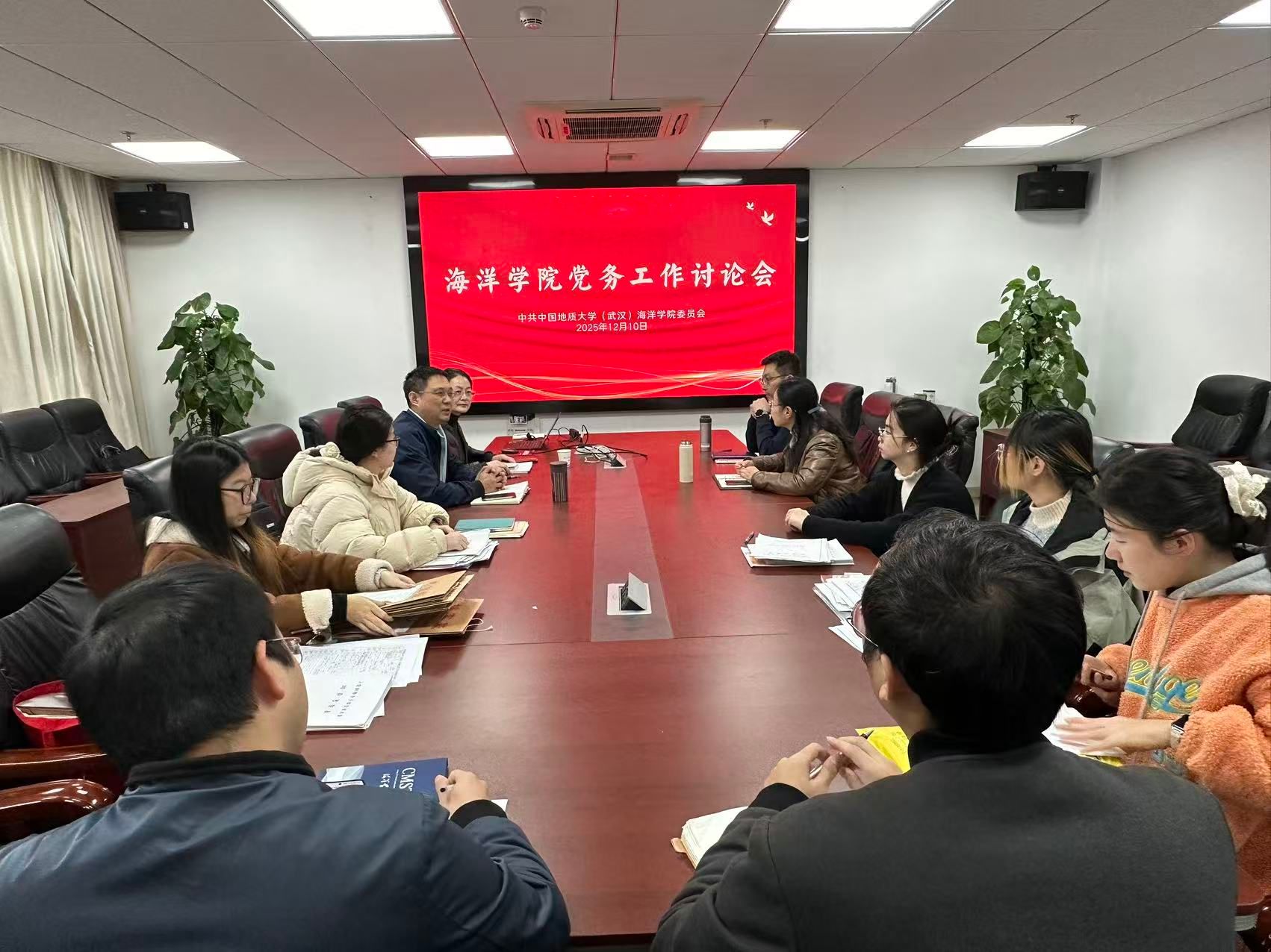 为进一步规范发展党员工作流程,提升党务工作者业务能力,严把党员“入口关”,2025年12月10日,海洋学院举行党务工作讨论会。党委组织部正处级专职组织员蒋怀柳到学院指导工作。学院党委书记刘国华、党委副书记钟苹、团委书记陈波、组织秘书韩瑞以及学院各师生党支部书记参会学习。