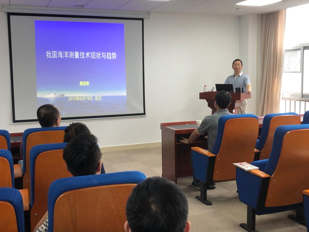 2019年6月19日上午10点,翟国君教授应邀来我院进行访问交流,并作了题为“我国海洋测量技术现状与趋势”的学术报告。报告会由副院长陈刚教授主持。翟国君教授是海军研究院高级工程师,海军大连舰艇学院教授,同为我院兼职教授、博导;国际海道测量组织潮汐委员会委员,国际大地测量与地球物理联合会委员;曾获全国优秀科技工作者称号,主持多项国家重大海洋专题,是我国海道测量领域知名专家。