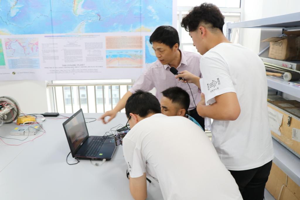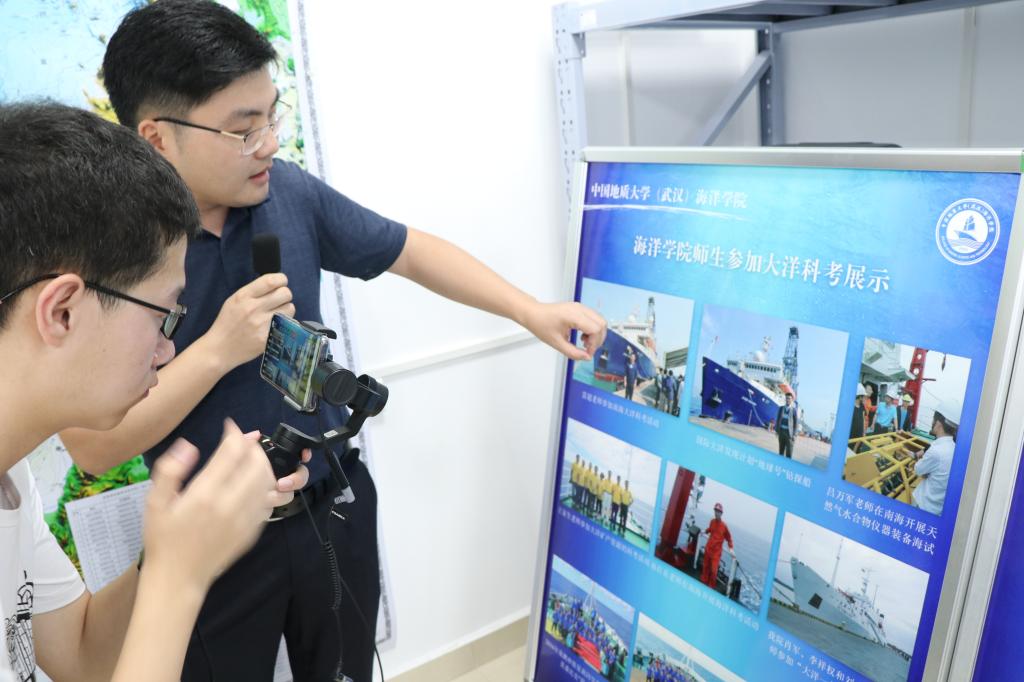 在海洋探测实验室里,雷超老师给广大网友介绍了海洋学院师生参与大洋科考的具体情况。在2017年的IODP大洋科考活动中雷超老师视频连线海洋学子,将实时拍摄的科考画面传回了地大教学现场,给同学们上了一节“特殊”的海洋科普教育课程。