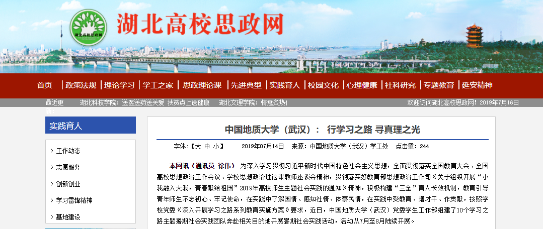 湖北高校思政网报道导海洋学院“学海洋强国思想,践向海图强之路”学习之路社会实践。