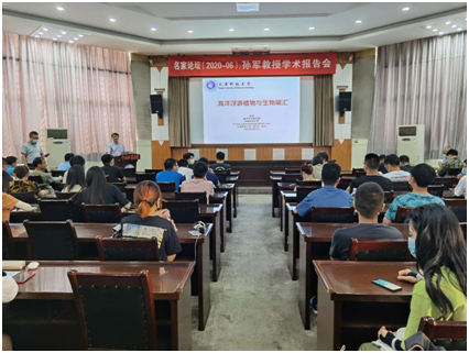 2020年9月7日下午,孙军教授以“海洋浮游植物与生物碳汇”为题,在我校名家论坛作报告。海洋学院党委书记成军主持报告会,生环国重、环境学院、材化学院、海洋学院师生聆听报告并进行交流讨论。
