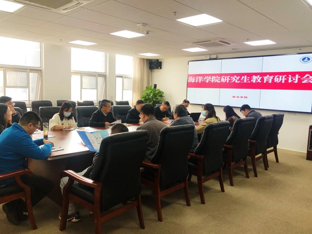 (通讯员韩瑞)10月19日下午,海洋学院在东区教学综合楼A1804会议室召开研究生教育讨论会。会议由主管研究生副院长王家生教授主持,研究生院、学工处、国际合作处、院领导班子,院教师代表等参会。