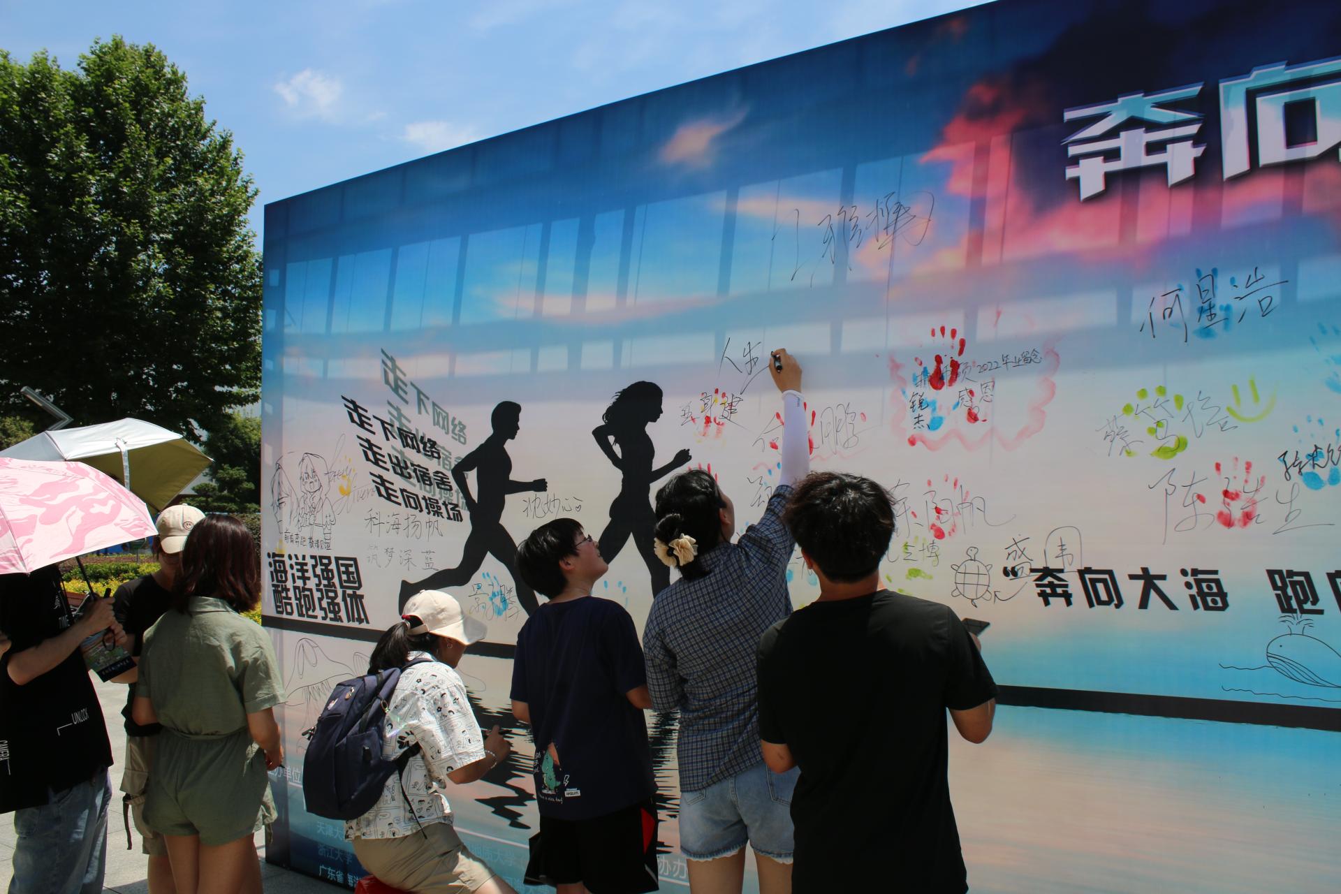 活动过程中,各参赛师生从东区教学综合楼出发,沿途经过化石林、体育馆、工程楼、校医院以及八角楼,完成全长约3公里的慢跑行程。其中慢跑路线上设置了海洋工程、海洋地质、海洋生物、海洋历史四个主题的科普知识打卡点,各摊点以参赛选手答题的形式为大家科普海洋知识。在顺利获得四个摊点科普问答徽章,完成全程慢跑,并抵达喷绘海报处完成签名、绘画留念后,视为完成慢跑活动。活动后大家纷纷表示,自己不仅在慢跑过程中享受了运动乐趣,更在摊点的活动中感受了蔚蓝海洋的魅力。