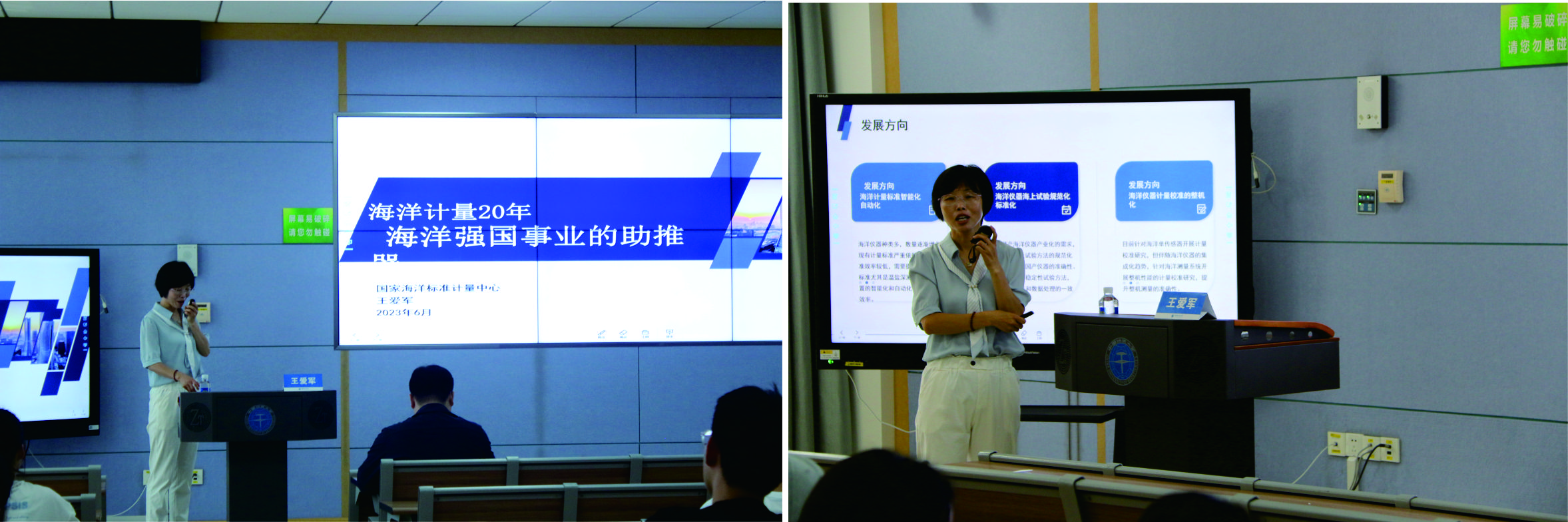 国家海洋标准计量中心王爱军高级工程师受邀讲授题为《海洋计量20年:海洋强国事业的“助推器”》科普讲座。她从计量基本概念、计量的发展、海洋计量体系三方面着重强调了海洋计量工作在我国计量体系和海洋公共服务事业中的重要性。她表示,自党的十八大以来,我国海洋事业发展取得历史性成就,面向未来海洋计量标准智能化、海洋仪器实验规范化和计量校准整机化的需求,她期盼地大学子能够积极投身海洋标准计量工作中,一同助力我国海洋经济和事业的高质量发展。