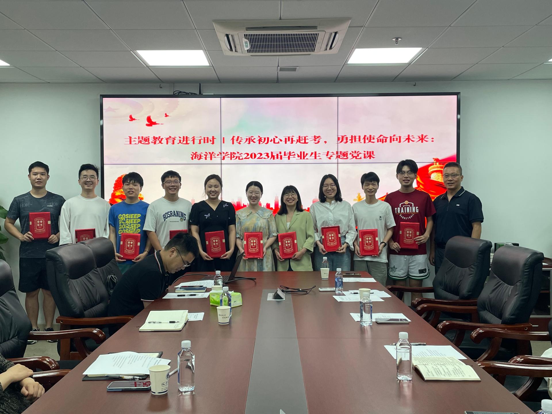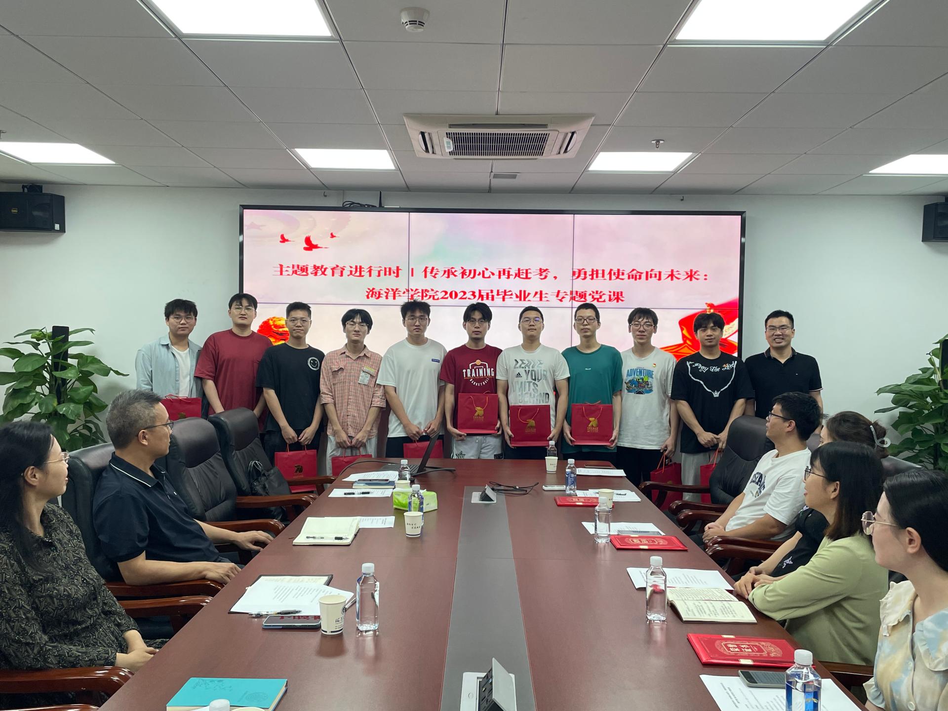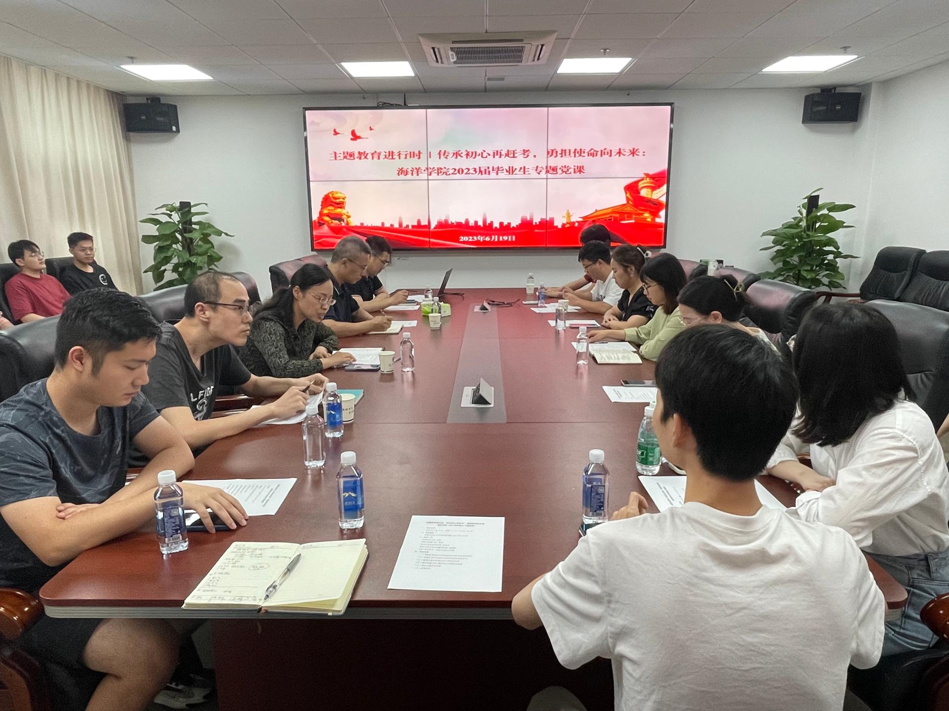 为认真听取2023届毕业生对学院发展的建议,6月19日上午,海洋学院2023届毕业生座谈会暨毕业生党员专题党课在东区教学综合楼A1804会议室举办。海洋学院党委书记成军、院党委副书记钟苹、海洋科学系教师代表刘恩涛、海洋工程与技术系教师代表姜逢源、毕业生辅导员陈杨与学院本硕博共计20名毕业生围坐一起,交流收获,展望未来。座谈会由学院党委副书记钟苹主持。