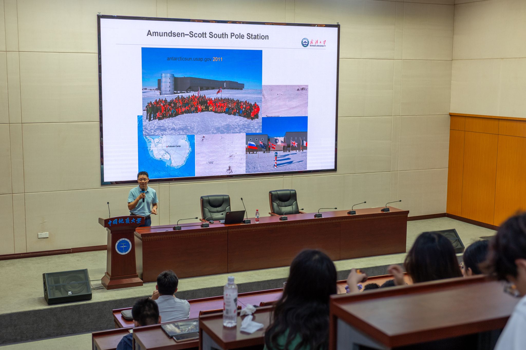 此次科普讲座展示出我国南北极科考团队坚持不懈、不畏艰难的科学精神。希望同学们能够继续高举科学大旗,站在科技制高点,对接国家重大需求,助力解决“卡脖子”难题,用国家的大事业磨砺自身真本领,为服务国家高水平科技自立自强作出新的更大贡献。