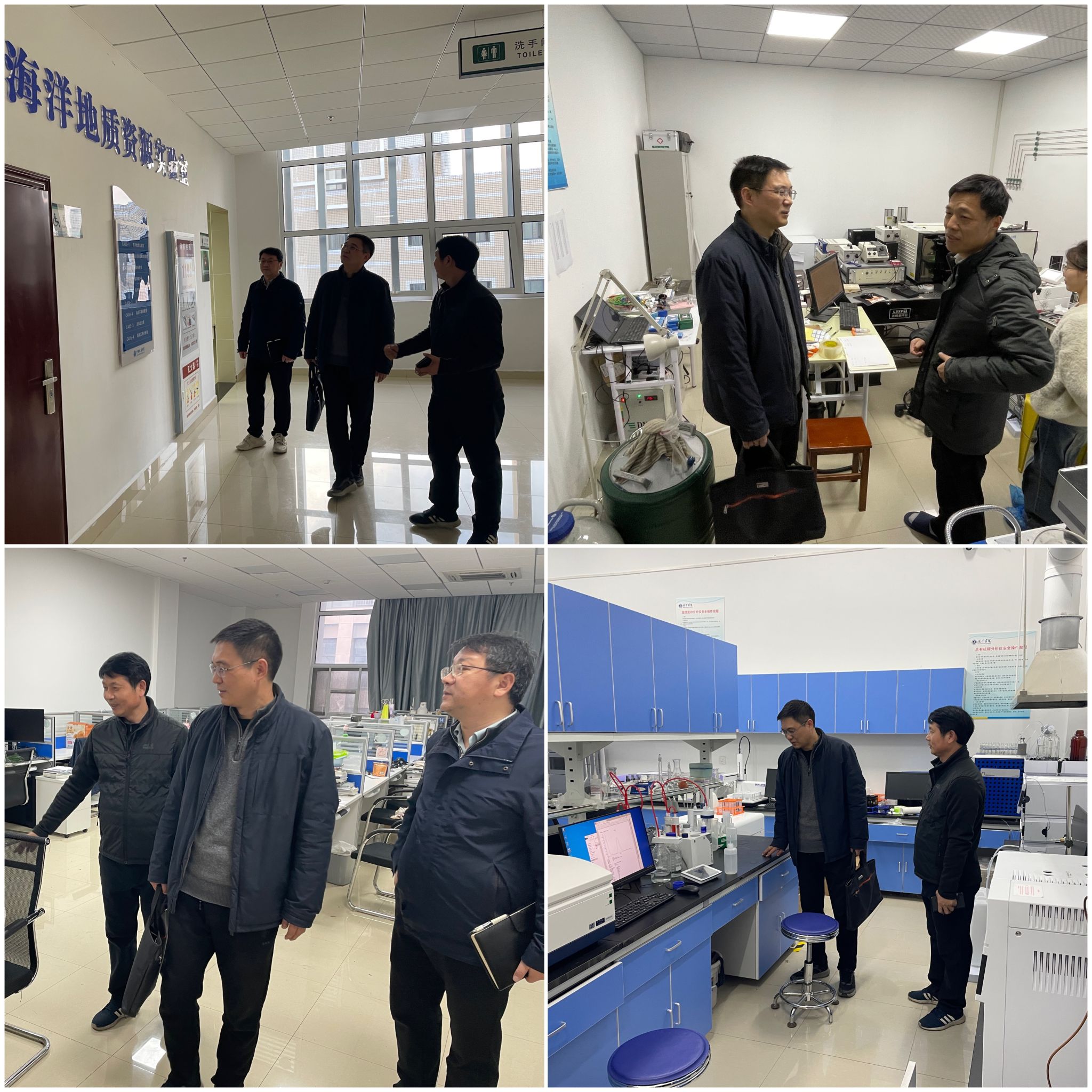 会后,刘国华同志和三级单位党政负责人及教职工代表交流,和孙军院长一起检查了学院实验室。