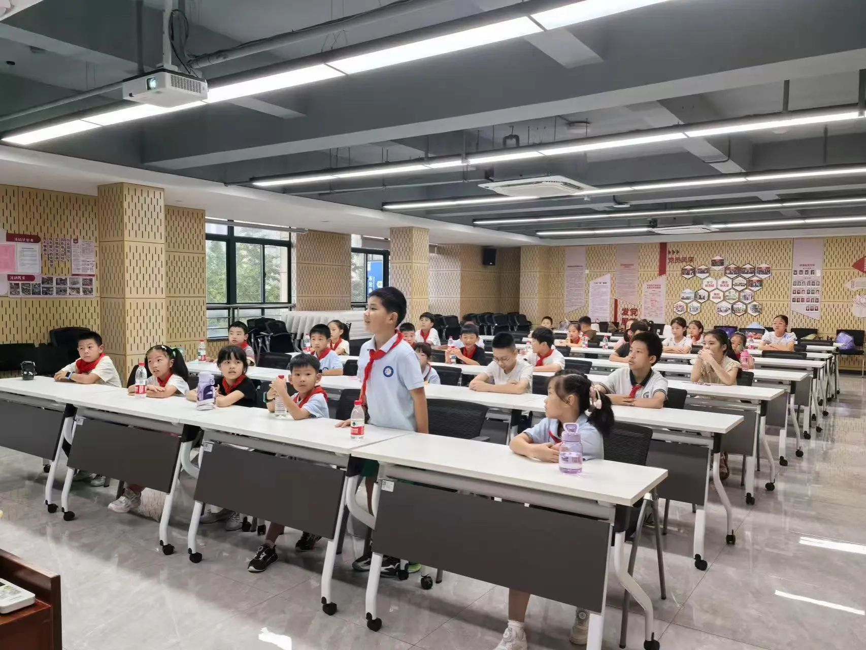 在"如果我生活在那个年代,我会怎么做?"的讨论环节,孩子们踊跃发言,有的说要帮解放军送情报,有的说要给毛主席站岗,童言童语中流露出对革命先辈的崇敬之情。