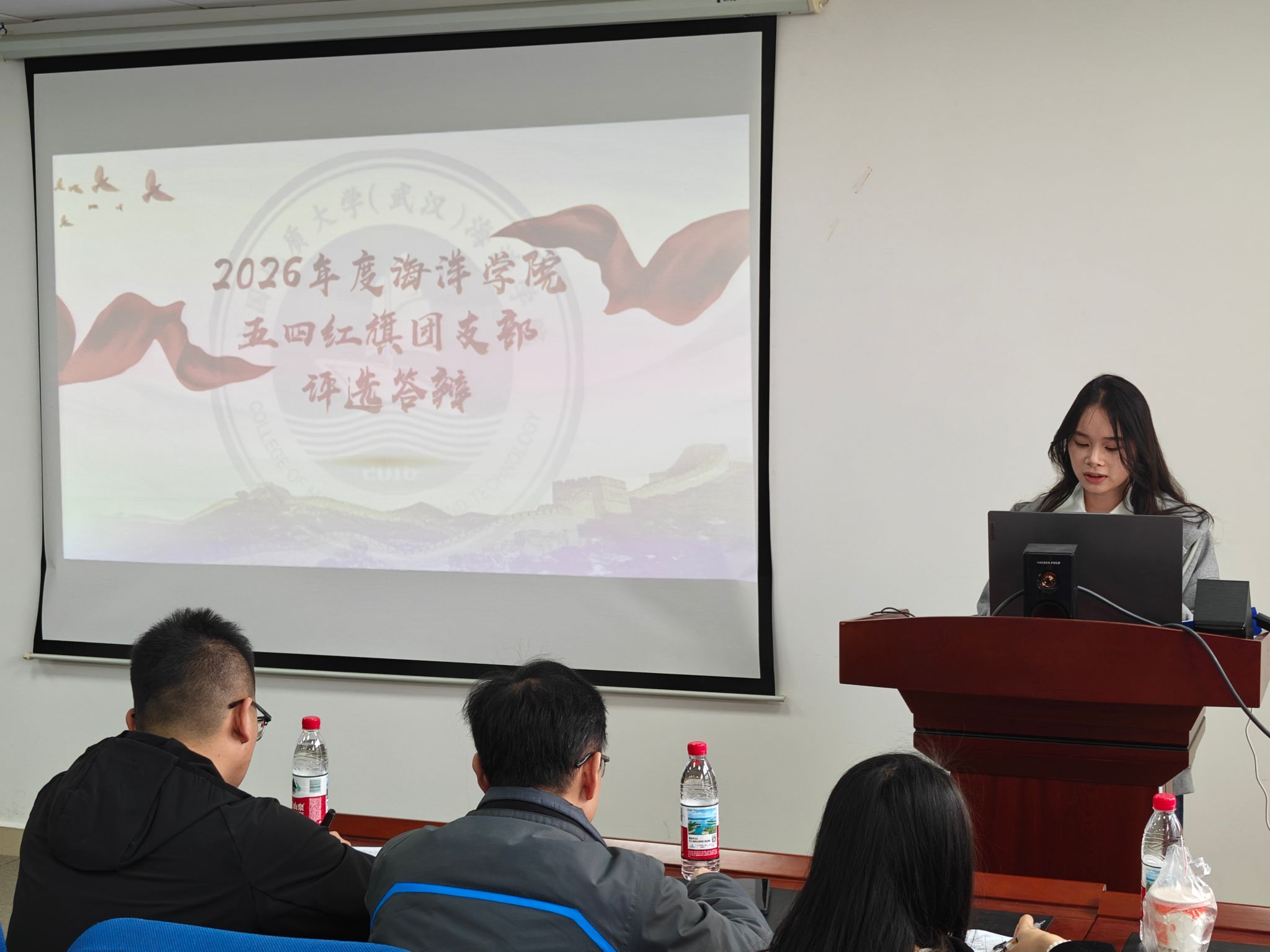 为夯实基层团组织建设根基,发挥先进典型示范引领作用,激励全院团支部以标准化、特色化建设争先创优,3 月 29 日上午,海洋学院举行2026年“百优团支部”结项暨五四红旗团支部评选答辩。学院团委书记陈波,班主任代表廖远涛、何杰老师担任评委。
