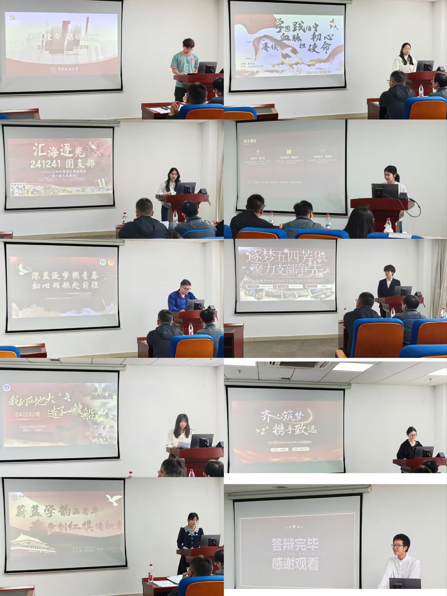 答辩环节中,各支部代表依次上台,以 “基层组织建设” 为核心主线,围绕 “班子建设强能力、制度执行抓规范、特色活动聚合力、思想引领筑根基、未来规划提质效” 五大板块,结合 PPT 直观展示支部在组织建设中的具体实践:从支委分工协作、团员发展培养、“三会两制一课”常态化开展,到依托海洋专业特色打造的主题团日、志愿服务等凝聚人心的组织活动,全面呈现新时代基层团支部的组织力与战斗力,展现出扎实的基层建设成效与奋进姿态。
