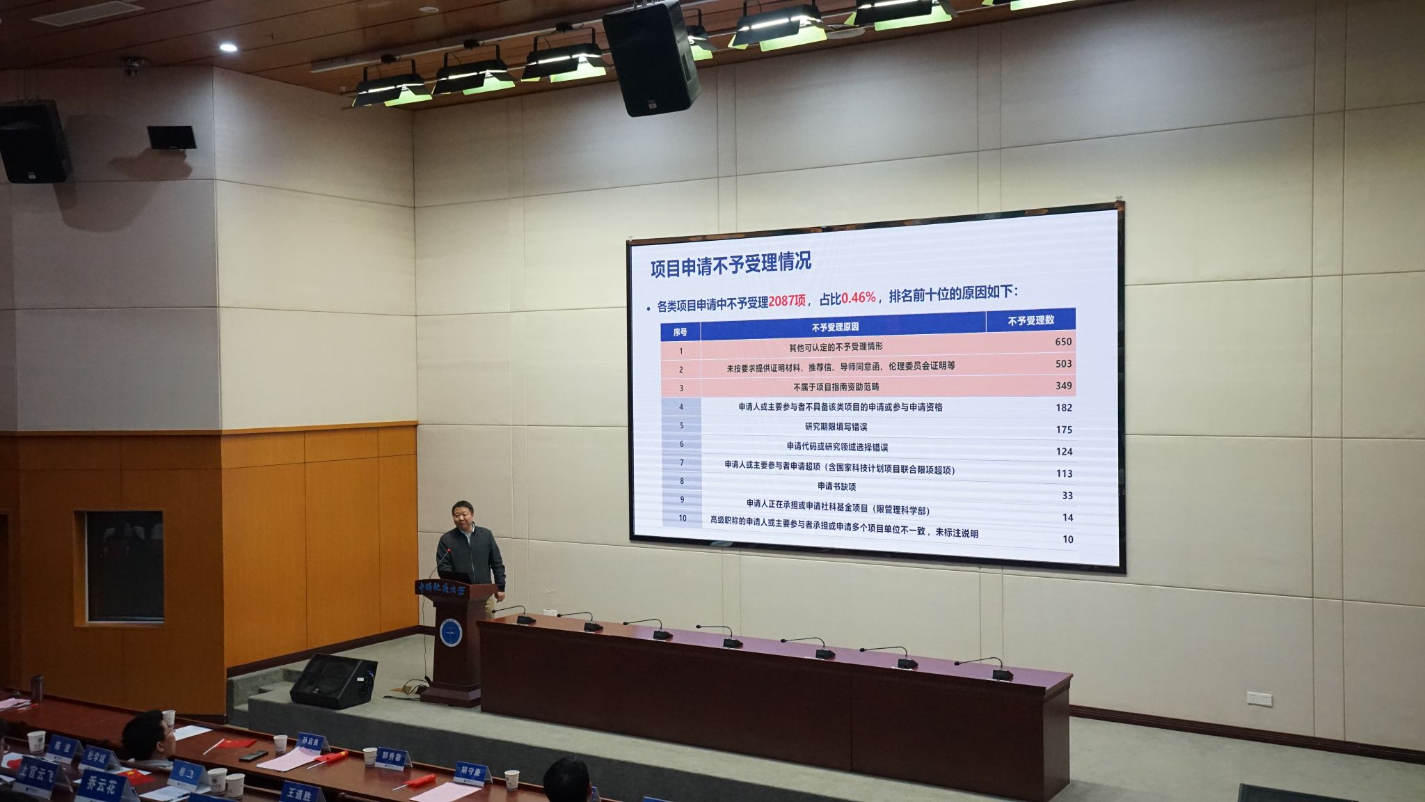 会议邀请科学技术发展院副院长肖平宣讲国家自然科学基金相关政策。肖平副院长讲述了国家自然科学基金2025年全国和我校的项目申请及资助概况,解读了2025国家自然科学基金改革举措。同时,肖平副院长还对2026年国家自然科学基金申请注意事项进行重点提醒,并要求有意申请国家自然科学基金项目的老师务必认真阅读《2026年度项目指南》,精准把握资助方向与申请规范,充分利用寒假集中时间,聚焦核心科学问题,突出研究创新点,完善研究方案与论证逻辑,确保申请材料真实、规范、高质量,为2026年项目申报工作奠定坚实基础。