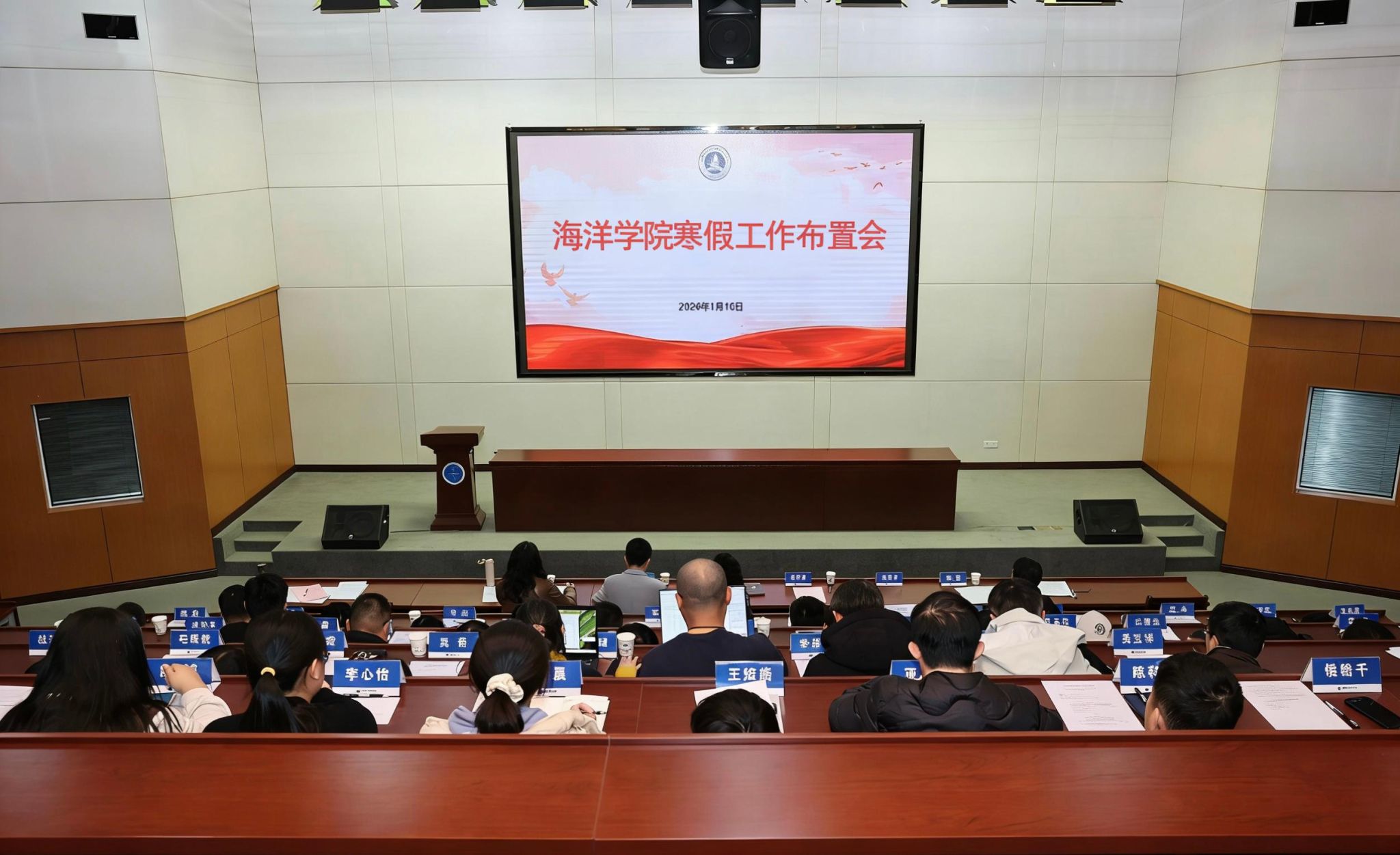 (通讯员 陈亮 乔云花 审稿 刘国华)1月16日下午,海洋学院在南望山校区教学综合楼A0116会议室召开寒假工作布置会。学院在校院领导、全体教师和部分学生代表参加,学院党委书记刘国华主持会议。